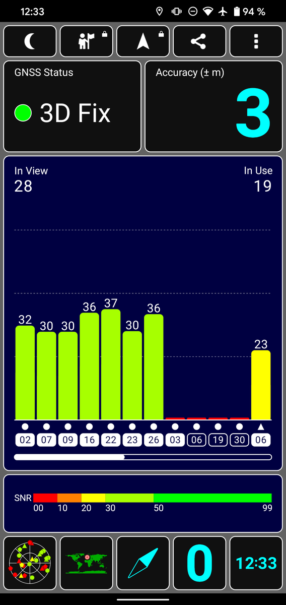 El bloqueo GPS se obtuvo rápidamente tanto en exteriores como en interiores, y los servicios de localización soportados por el Pixel 4 incluyen GPS, Glonass, BeiDou, QZSS y Galileo. No es compatible con SBAS ni con doble banda.