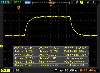 | 40 ms ... subida ↗ y bajada ↘ combinada | ↗ 21.2 ms subida | |