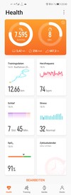 Huawei utiliza sus propias aplicaciones para el análisis de la salud: TruRelax analiza los niveles de estrés y TruSleep analiza el sueño. Además de las fases de sueño ligero, sueño profundo y REM (Rapid Eye Movement), el registro del sueño evalúa la calidad de la respiración del usuario, pero, a diferencia de otros dispositivos como el Fitbit Charge 4, no proporciona ninguna información específica sobre las irregularidades de la respiración.