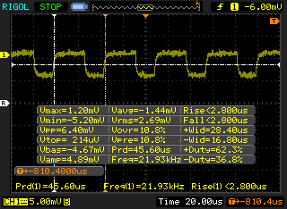 | PWM Frequency (Hz) | 21930 ? | 26600 ? | 21740 ? | 29070 ? | 113600 ? | |