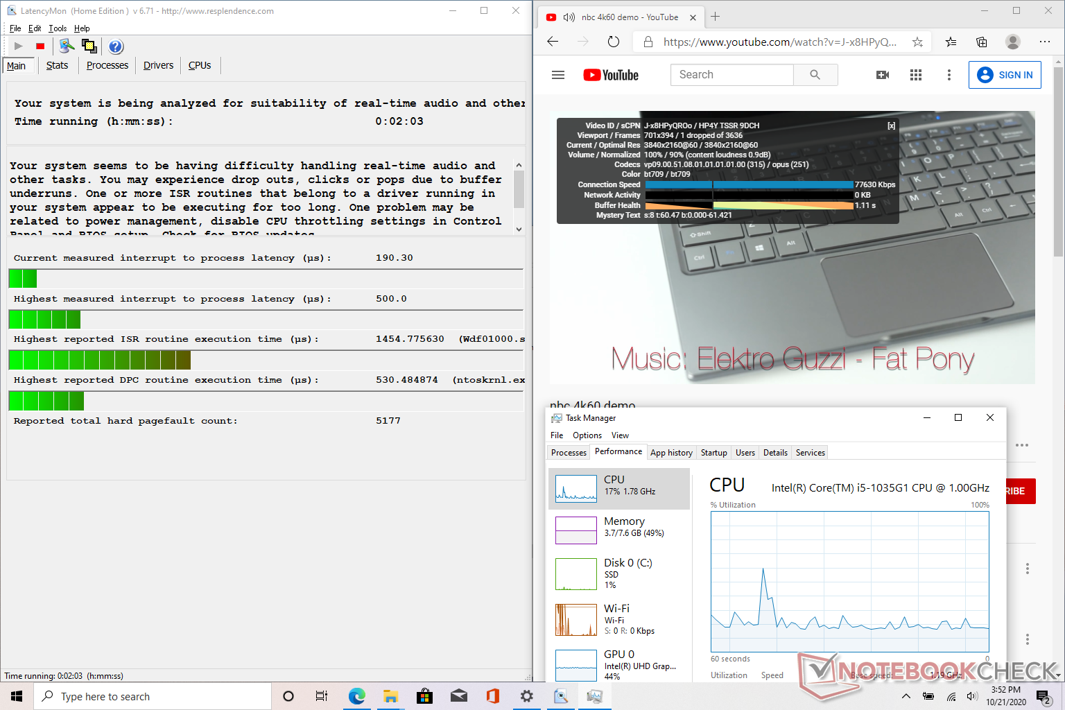 Cuando se ejecuta Prime95, la CPU se elevaría al rango de 2,0 a 2,4 GHz durante unos 50 segundos hasta alcanzar una temperatura del núcleo de 87 C. El ventilador interno alcanza su máximo una vez que el núcleo alcanza los 85 C. No obstante, las velocidades caen rápidamente al rango de 1,7 a 1,8 GHz a partir de entonces para mantener una temperatura del núcleo más aceptable de 71 C.