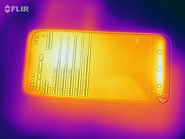 (+) La temperatura máxima en la parte superior es de 39 °C / 102 F, frente a la media de 35.2 °C / 95 F, que oscila entre 21.9 y 247 °C para la clase Smartphone.