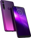 El Motorola One Macro se parece mucho al Motorola Moto G8 Plus en la versión azul. Sólo la muesca de gota de agua ligeramente más grande y el color violeta ligeramente más oscuro hacen que el One Macro sea único. La parte posterior está hecha de plástico y es muy brillante, es muy receptiva a las huellas dactilares. La estabilidad de la caja es buena, incluso si se puede presionar fácilmente en algunos lugares. El smartphone está certificado IP52, pero esto sólo significa protección contra salpicaduras de agua, no debe sumergir el smartphone. El teléfono Motorola es bastante grande y un poco más pesado que los otros teléfonos.