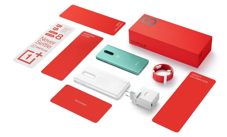El OnePlus 8 viene con una caja de gran calidad con un marco de metal y, en el caso de nuestro dispositivo de prueba "verde glacial", con una espalda mate. Las otras opciones son "brillo interestelar" y "negro de ónix", este último con un dorso brillante.
