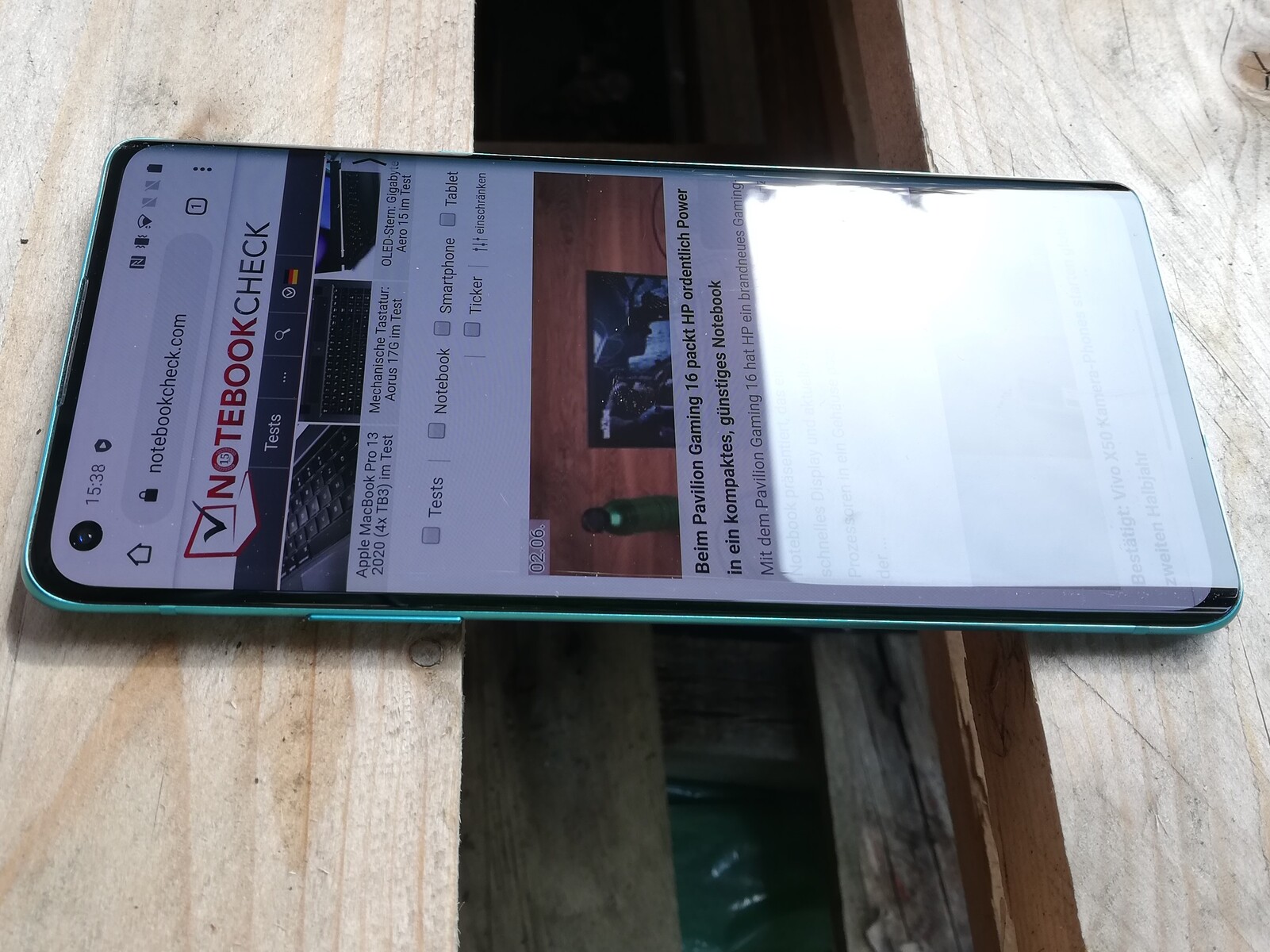 La pantalla del OnePlus 8 consiste en un panel OLED de 6,55 pulgadas con una resolución de 2400x1080 píxeles y una frecuencia de actualización de 90 Hz. Observamos un brillo medio muy bueno de 783 cd/m². En la prueba de APL50, nuestro dispositivo de prueba alcanza temporalmente un resultado aún mayor de 939 cd/m². Sin embargo, el smartphone disminuye rápidamente su brillo tan pronto como la pantalla se calienta demasiado, reduciendo el brillo máximo a sólo 490 cd/m² en algunos casos. Cuando el sensor de luz ambiental está desactivado, el brillo puede ajustarse manualmente hasta 437 cd/m².