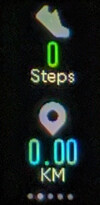 El económico monitor tiene un sensor óptico de frecuencia cardíaca y un acelerómetro de tres ejes, que asegura, entre otras cosas, que la pantalla se active al levantar el brazo. En lugar de una pantalla táctil completa, la banda sólo tiene un botón táctil en el borde inferior de la pantalla. Además, falta un sensor de luz. Sin embargo, el consumo de energía es en general bajo, por lo que dejamos el brillo en el nivel más alto de la prueba sin ningún inconveniente notable; este nivel de brillo no fue cegador ni desagradable incluso en interiores. Para poder leer la pantalla LCD en el sol, es necesario encontrar un ángulo favorable y acercarlo a su campo de visión, incluso en el nivel más brillante.