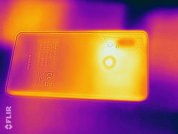 (+) La temperatura máxima en la parte superior es de 33.7 °C / 93 F, frente a la media de 35.2 °C / 95 F, que oscila entre 21.9 y 247 °C para la clase Smartphone.