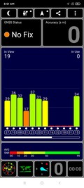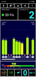 La posición actual se determina utilizando las redes de satélites GPS, GLONASS y Beidou, así como el sistema complementario basado en satélites SBAS. Determinar la posición actual dentro de los edificios no funciona con nuestra muestra de prueba; los tiempos de posicionamiento en el exterior son notablemente largos también.