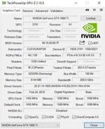 La GTX 1660 Ti también utiliza bien su turbo, pero tampoco funciona a pleno rendimiento. Según la GPU-Z, la GTX 1660 Ti promedió 1.665 MHz en el punto de referencia UNIGINE Heaven 4.0. Puede marcar hasta 1.905 MHz, pero no podía funcionar de forma consistente a esta velocidad.
