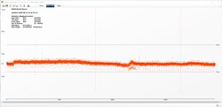 Al mirar el gráfico de velocidad de cuadro, que muestra los resultados de nuestra prueba de esfuerzo en el juego con The Witcher 3 (ultra preestablecido), se puede ver que el refrigerador de doble ventilador no tiene problemas para mantener la KFA2 GeForce GTX 1650 EX Plus refrigerada. Hubo una ligera caída en el rendimiento en una ocasión, después de la cual el rendimiento volvió rápidamente a un nivel normal. Los usuarios no deberían experimentar ninguna caída significativa en el rendimiento bajo carga. No hubo problemas con el rendimiento del tiempo de cuadro.