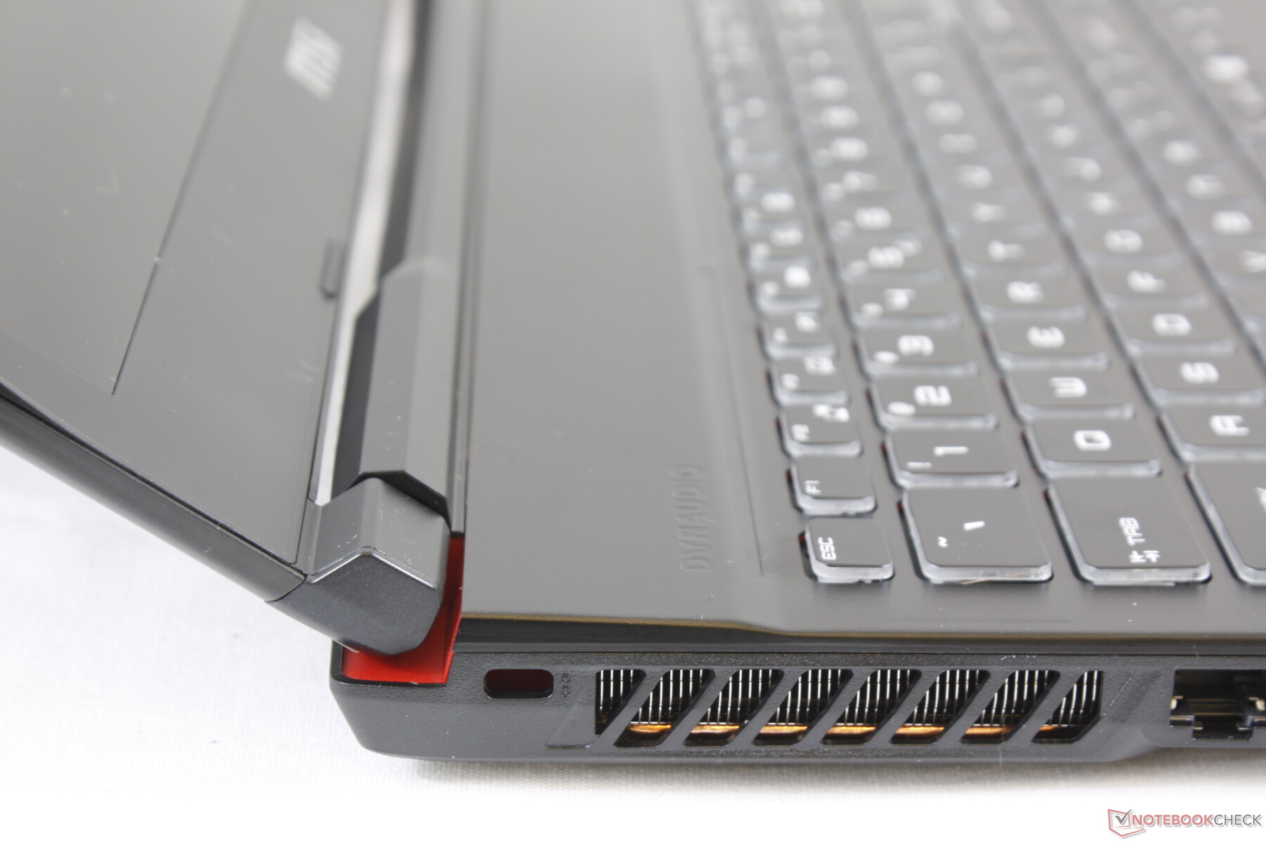 La iluminación RGB por tecla regresa y todo el texto impreso se ilumina. Algunos otros portátiles con iluminación RGB por tecla no iluminan el texto secundario de las teclas como los de la serie Gigabyte Aero o el Asus ROG Strix III.