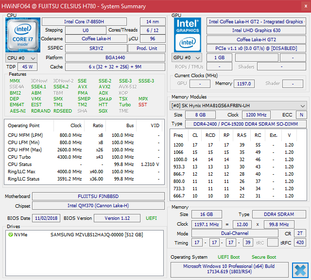 Nuestra unidad de revisión de Fujitsu Celsius H780 contiene el Core i7-8850H, 16 GB RAM, una SSD de 512 GB y la Nvidia Quadro P2000. Esta configuración cuesta aproximadamente 2.500 Euros (~$2.806) en Alemania.