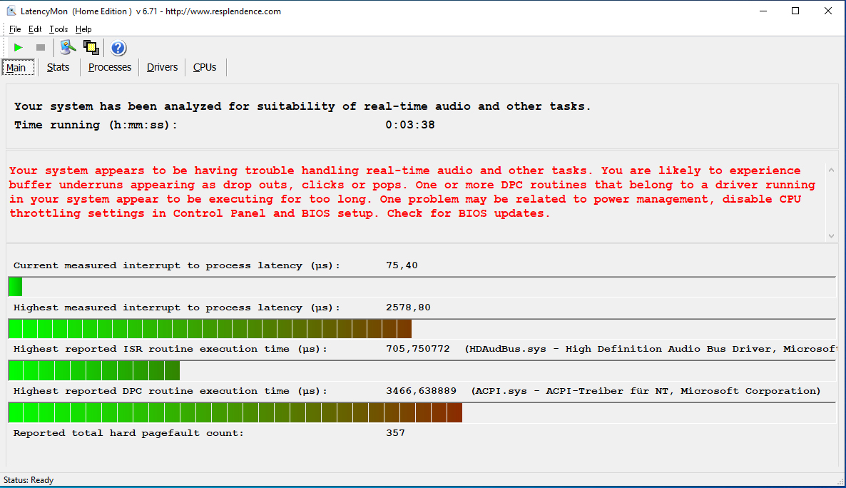 | DPC Latencies / LatencyMon - interrupt to process latency (max), Web, Youtube, Prime95 | |