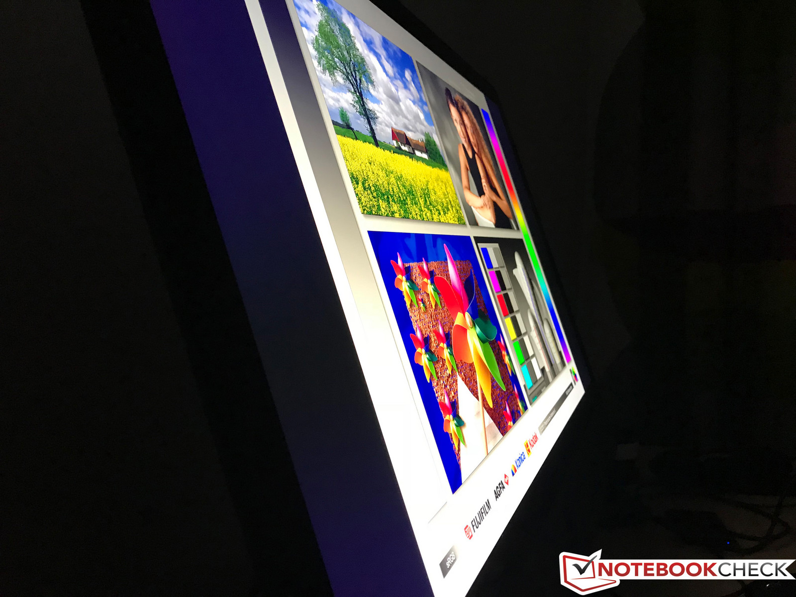 El panel de 27 pulgadas y 5K (5120x2880 píxeles) lleva la designación APPAE1E y es el mismo panel LG (LM270QQQ1) que se encuentra en el iMac 5K, según nuestros colegas de iFixit. Apple anuncia una luminancia de 500 nits, pero nuestras medidas son un poco más cortas, hasta 469 nits en el centro de la pantalla y todavía alrededor de 470 nits en promedio. Este sigue siendo un resultado excelente, ya que apenas utilizarás el iMac Pro al aire libre. Sin embargo, todavía puede ser difícil de usar en oficinas debido a la superficie semi-brillante (similar a la de los MacBooks) si hay reflejos de fuentes de luz o ventanas.