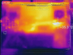 (±) Jugando a The Witcher 3, la temperatura media de la parte superior es de 35.5 °C / 96 F, frente a la media del dispositivo de 33.9 °C / 93 F.