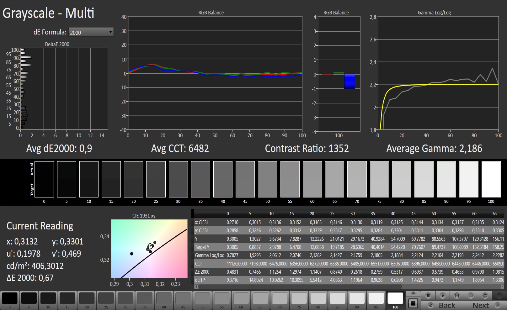 ΔE Greyscale Calman: 2.4 | ∀{0.09-98 Ø5}