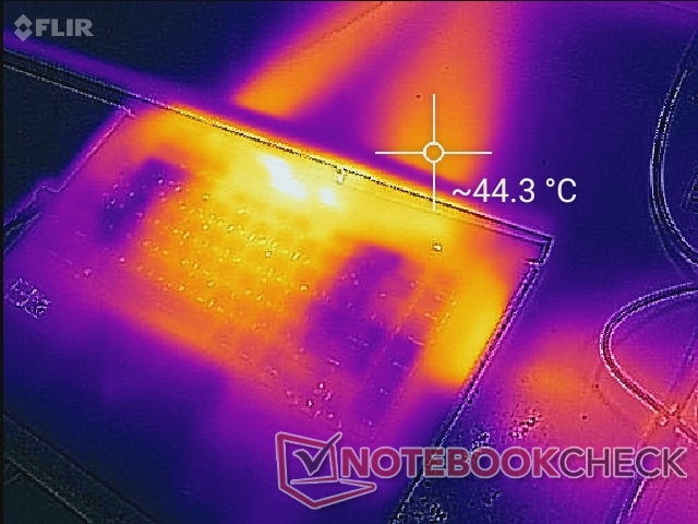 Las temperaturas de la superficie son casi simétricas debido a la solución de enfriamiento subyacente. Cuando está en marcha en vacío o durante cargas bajas, los reposamanos y las teclas del teclado permanecen frías mientras que los puntos calientes se encuentran en la parte posterior de la unidad, donde es improbable que los usuarios los toquen.