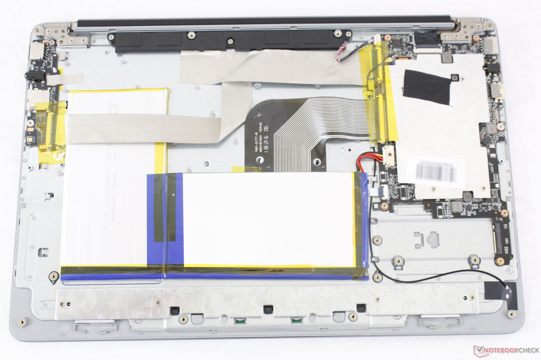 El panel inferior está asegurado por 14 tornillos Philips con cuatro de ellos ocultos debajo de los pies de goma. Aunque el panel de plástico es fácil de quitar, se necesita un poco de paciencia. El único componente actualizable es la ranura M.2 para almacenamiento secundario. Las SSD, RAM y WLAN principales están soldadas a la placa.