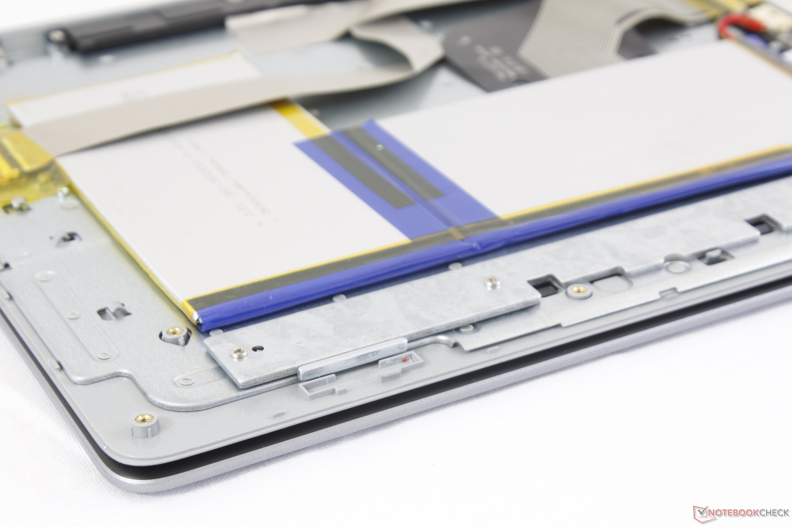 Aunque gran parte del espacio interior está vacío, podemos apreciar el revestimiento metálico alrededor de la batería para mejorar la rigidez.