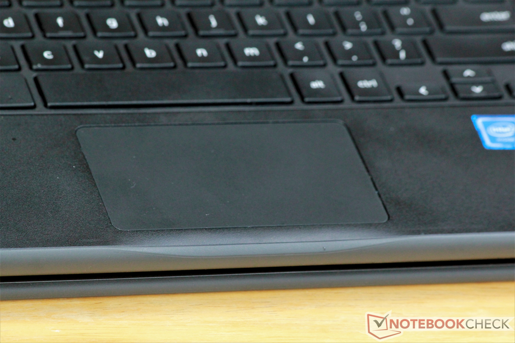 El teclado es muy bueno, considerando el precio. Las llaves son un poco pequeñas pero se sienten elásticas. La retroalimentación es firme, y escribir se siente bien en general. La falta de retroiluminación será una decepción para algunos usuarios. Las teclas de función habituales de Chrome OS (atrás, adelante, pantalla completa, etc.) están presentes a lo largo de la fila de funciones. Para una máquina de presupuesto, el teclado es perfectamente utilizable, especialmente para conferencias largas.