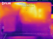 Encontramos un total de tres puntos calientes en la superficie de algo más de 41 °C. En general, el 5579 permaneció más frío que su predecesor (43,3 °C). La temperatura de la CPU se disparó rápidamente a niveles críticos de 99 °C máx. mientras realizábamos nuestra prueba de esfuerzo Prime 95. En otras palabras: el estrangulamiento térmico era inevitable. Al destacar tanto la CPU como la GPU, la CPU se mantuvo más fría debido a que tuvo que compartir su TDP de 15 W con la GPU. En consecuencia, sólo alcanzó los 70 °C a velocidades de reloj de tan sólo 1,2 GHz. No hubo ningún efecto a largo plazo en el rendimiento 3D en absoluto - ejecutar 3DMark inmediatamente después de nuestra prueba de esfuerzo produjo exactamente el mismo resultado que ejecutar 3DMark inmediatamente después de un arranque en frío.