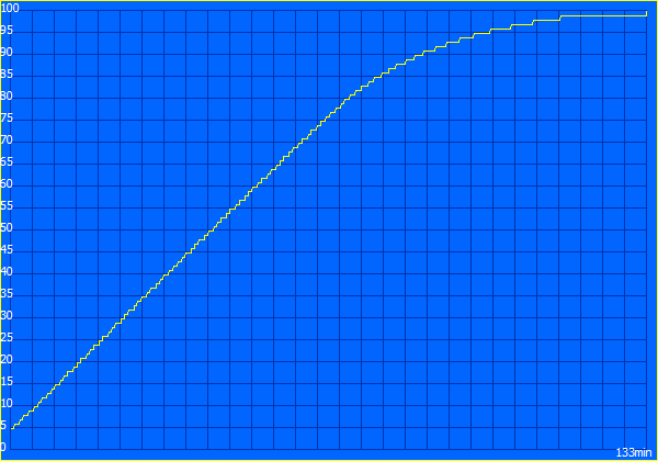 Nuestro dispositivo de prueba dura ocho horas y cincuenta y seis minutos en nuestra prueba de duración de la batería Wi-Fi durante la cual ejecutamos un script que simula la carga necesaria para renderizar sitios web. También redujimos el brillo de la pantalla en tres niveles para esta prueba, lo que corresponde a una luminosidad de 150 cd/m². Realizamos nuestra prueba de duración de la batería H.264 con la pantalla ajustada a la misma luminosidad, durante la cual ejecutamos un vídeo codificado en H.264 en un bucle hasta que la batería se descarga por completo. Nuestro dispositivo de prueba consiguió unas impresionantes ocho horas y dieciséis minutos en esta prueba, que es sólo un 3% menos que el ZenBook Flip 14, a pesar de tener una batería 9 Wh más pequeña. Este tiempo de ejecución es suficiente para una larga noche de cine.