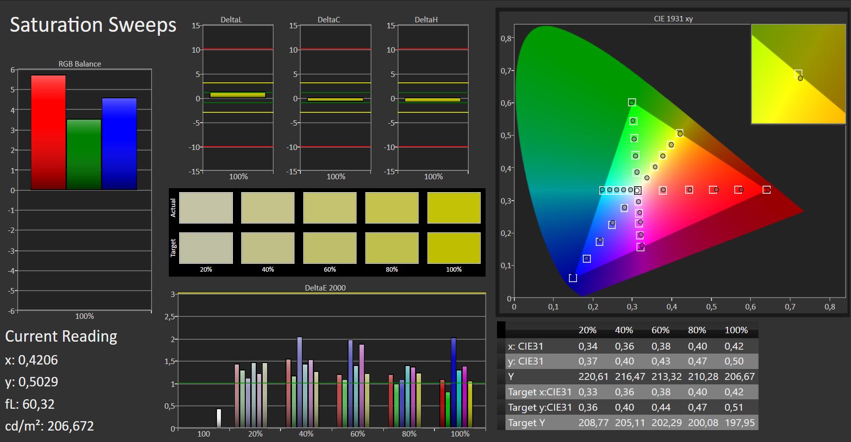 ΔE ColorChecker Calman: 1.2 | ∀{0.5-29.43 Ø4.78}