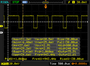 | PWM Frequency (Hz) | 943 ? | 1000 | 961 ? | 1000 ? | ||