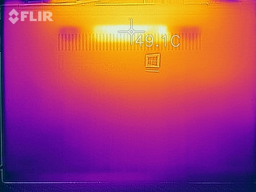Las temperaturas de la superficie son muy bajas cuando está en reposo. Se elevan ligeramente bajo carga, especialmente en la parte trasera de la caja. Medimos 46.2 °C (~ 115 °F) en el centro del fondo, que es notablemente cálido pero todavía no crítico.