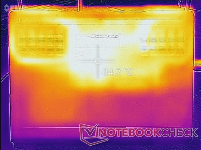 (±) Jugando a The Witcher 3, la temperatura media de la parte superior es de 36.7 °C / 98 F, frente a la media del dispositivo de 33.9 °C / 93 F.