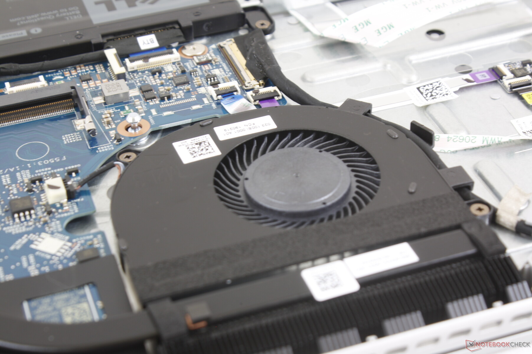 El panel inferior es moderadamente difícil de quitar ya que los bordes y las esquinas están bien cerrados. Una vez eliminado, los usuarios tendrán acceso a dos ranuras SODIMM y dos bahías de almacenamiento, y el gran espacio no utilizado entre el disco duro y el ventilador del sistema se siente desperdiciado e infrautilizado.