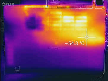 (-) La temperatura máxima en la parte superior es de 46.4 °C / 116 F, frente a la media de 34.3 °C / 94 F, que oscila entre 21.2 y 62.5 °C para la clase Office.