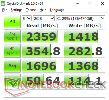 El funcionamiento con pilas da como resultado un rendimiento de la CPU ligeramente más lento. Una prueba 3DMark 11 con baterías arrojaría unos resultados de Física y Gráficos de 8112 y 1952 puntos, respectivamente, en comparación con los 10599 y 1947 puntos que se obtienen con la red eléctrica.