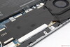 El panel inferior está asegurado por 9 tornillos Phillips para facilitar el mantenimiento. Desafortunadamente, tanto la RAM como la WLAN están soldadas y el propio SSD M.2 está protegido por una cubierta difícil de quitar. La segunda ranura M.2 para WAN no tiene antena, lo que significa que los usuarios no pueden configurar un SKU sin WAN en la caja e instalar su propio módulo WAN en el futuro.