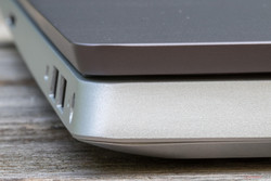 La ubicación de los puertos del HP Pavilion está bien pensada, por lo que no debería haber problemas de espacio incluso durante la ocupación total. El puerto HDMI 1.4 se encuentra en la parte posterior izquierda, seguido de la toma de red RJ 45, el único puerto USB tipo C (3.1 Gen. 1) y la toma de audio de 3.5 mm (combinación de auriculares y micrófono). El lado derecho contiene el conector de alimentación, dos puertos USB tipo A (3.1 Gen. 1), una cerradura Kensington y un lector de tarjetas SD. A diferencia del Pabellón de 14 pulgadas, este dispositivo no tiene sensor de huellas dactilares.