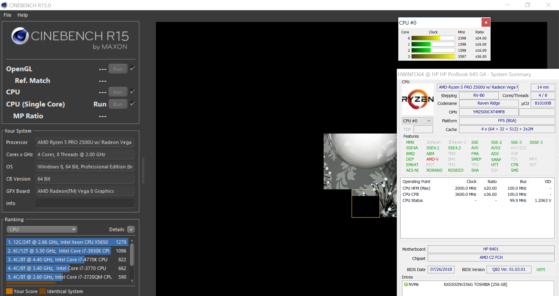 | HP ProBook 645 G4 3UP62EA R5 PRO 2500U, Vega 8 | HP ProBook 640 G3 Z2W33ET i5-7200U, HD Graphics 620 | Dell Latitude 5490-TD70X i5-8350U, UHD Graphics 620 | Fujitsu Lifebook E548 i5-8250U, UHD Graphics 620 | Lenovo ThinkPad L480-20LS001AGE i5-8250U, UHD Graphics 620 | Medio AMD Radeon RX Vega 8 (Ryzen 2000/3000) | Media de la clase Office | |