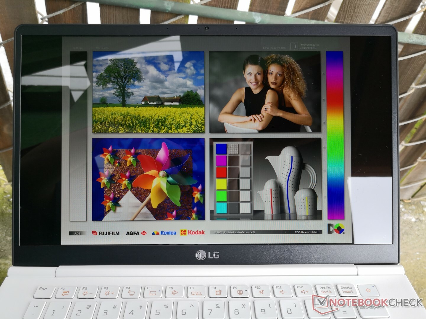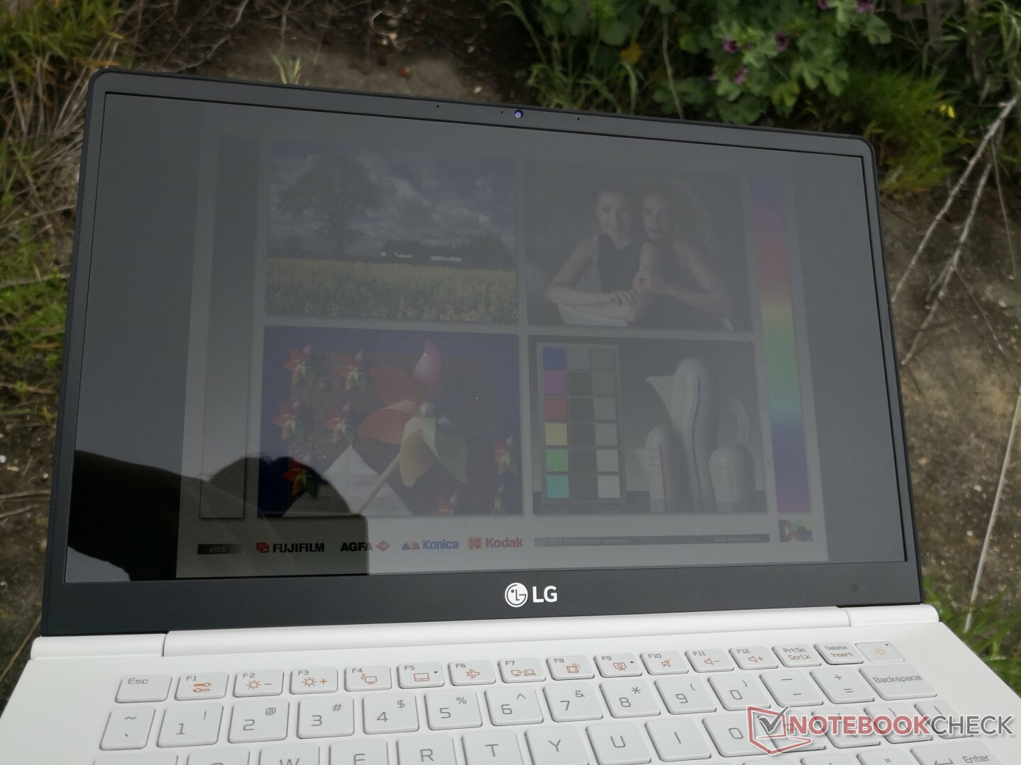 Naturalmente, el LG Gram 14 utiliza un panel IPS LG Philips LP140WF7-SPGG1. Este panel en particular no se encuentra en ningún otro portátil de nuestra base de datos en el momento de escribir este artículo. Aunque los colores, el contraste, los tiempos de respuesta y el brillo máximo son buenos, estos son comunes en un Ultrabook emblemático. En cambio, lo que distingue a la pantalla Gram 14 de las demás es su pantalla brillante sin cristal: el contenido aparece más nítido y limpio que en la mayoría de los otros Ultrabooks, ya que no hay una capa gruesa de Gorilla Glass. Los usuarios que deseen una pantalla más brillante pueden considerar la serie MateBook X Pro, XPS 13, MacBook Pro 13 o Samsung Notebook 9 NP900.