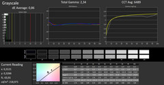 Para medir la precisión de los colores y escalas de grises, utilizamos el software de calibración CalMAN. La desviación DeltaE de unos 10 puntos sitúa nuestra unidad de prueba en el nivel habitual para pantallas TN baratas. Lo que era más molesto era el fuerte tono azul que también es visible en las escalas de grises.