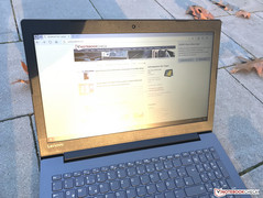 La pantalla Full HD del IdeaPad 320 de Lenovo es definitivamente preferible a la de Acer Extensa. Aunque se trata de un panel TN con ángulos de visión deficientes, Lenovo ha sido un poco más generoso en la elección de la pantalla. Ambos dispositivos ofrecen sólo bajos niveles de brillo con un promedio de alrededor de 200 cd/m². Esto está por debajo de lo que una exhibición moderna debería ofrecer.