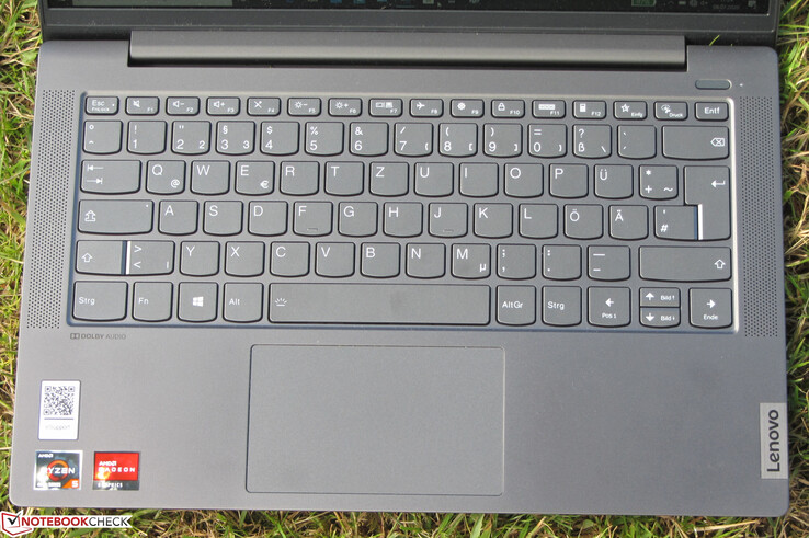Las teclas planas del teclado de chicle retroiluminado (dos niveles de brillo) ofrecen un recorrido corto y un punto de presión claro. Nos gusta la firme resistencia que ofrecen las teclas. Además, el teclado cede ligeramente al escribir, pero esto no ha resultado ser molesto. Lenovo ofrece aquí un teclado adecuado para el uso diario, que también es adecuado para las tareas habituales de escritura.