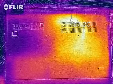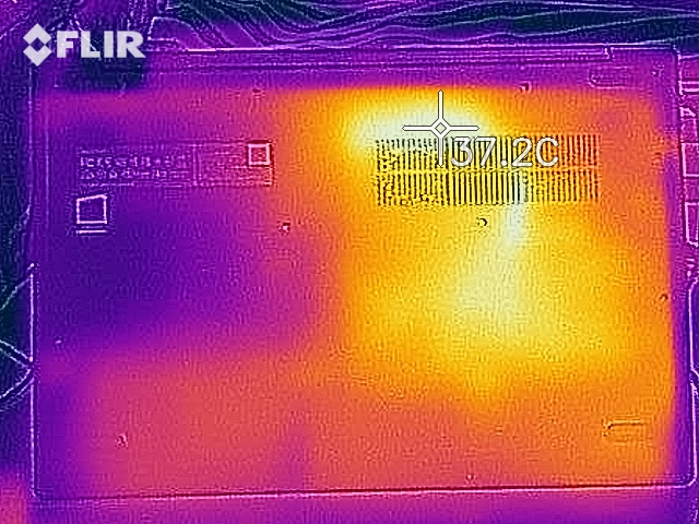 El calentamiento del ordenador es muy limitado. Durante la prueba de esfuerzo, registramos temperaturas ligeramente superiores a 30 °C (86 °F) en algunos puntos de medición. En el uso diario, los valores están en el rango verde. La prueba de esfuerzo representa un escenario extremo que no ocurre en la vida cotidiana. Utilizamos esta prueba para verificar que el sistema es estable incluso a plena capacidad.