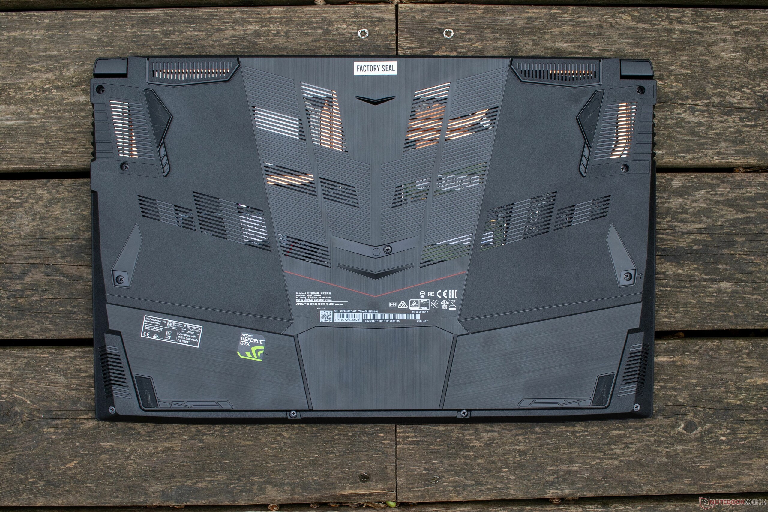 Si los usuarios quieren acceder al interior del GF75, tendrán que prescindir de las escotillas de mantenimiento dedicadas a componentes como la SSD o la RAM. En su lugar, hay que quitar toda la placa inferior. Éste se fija al armario bajo mediante tornillos. Una vez que se ha retirado la cubierta inferior, los usuarios pueden intercambiar fácilmente tanto la unidad SSD M.2 como la memoria RAM.
