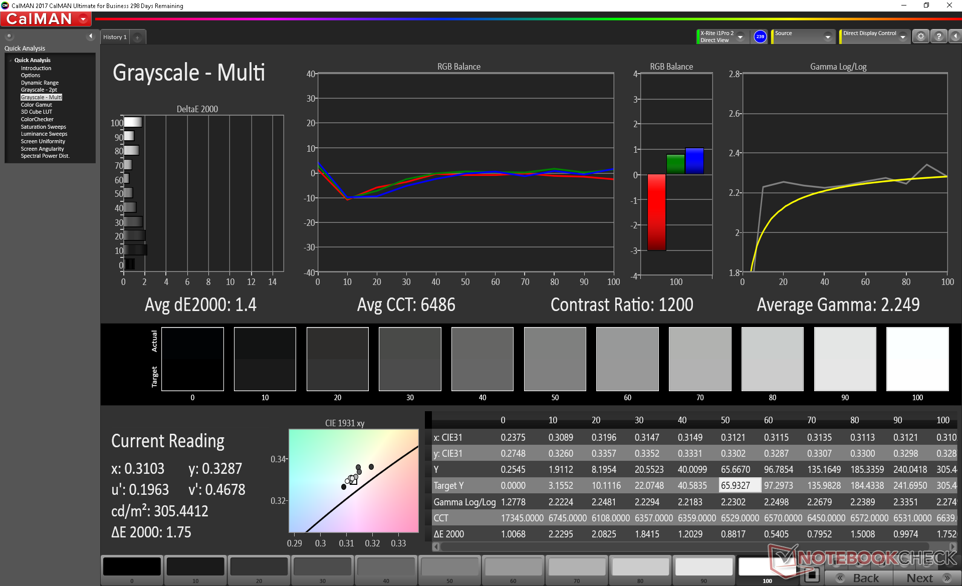 ΔE Greyscale Calman: 10.9 | ∀{0.09-98 Ø5}