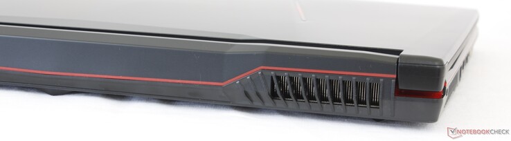 MSI ha mantenido todos los puertos de la última generación del GL72, aunque reorganizados en el GL73 para dar cabida a las nuevas rejillas de ventilación. Para bien o para mal, los puertos a lo largo del borde izquierdo están mucho más juntos ahora como resultado. Es comprensible que no exista la opción Thunderbolt 3 en este modelo de presupuesto.