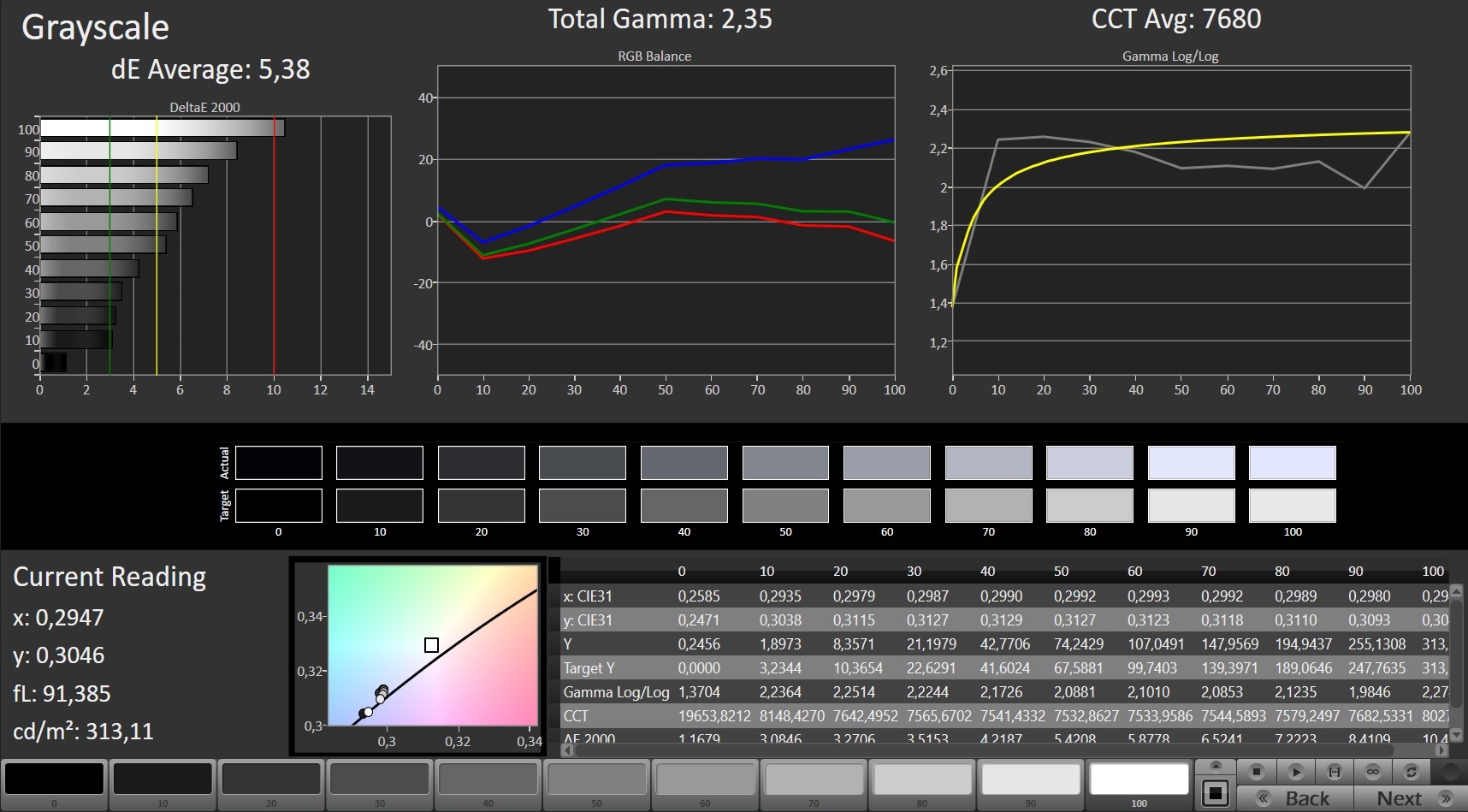 ΔE Greyscale Calman: 5.38 | ∀{0.09-98 Ø5}