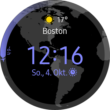 Los gestos horizontales abren las notificaciones (a la izquierda del dial) y los widgets de la aplicación (máx. 15 de 26) a la derecha del dial. En lugar de los gestos horizontales, puedes girar el bisel a la derecha o a la izquierda. El bisel es más útil cuando se desplaza a través de textos largos o menús.