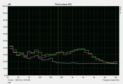Bajo carga, el XMG A707 funciona razonablemente bien: 42-46 dB(A) no es ni silencioso ni especialmente fuerte. Los otros competidores equipados con un GTX 1050 Ti - el Acer Helios 300 y el Asus GL703GE - son a menudo más fuertes en modo 3D.