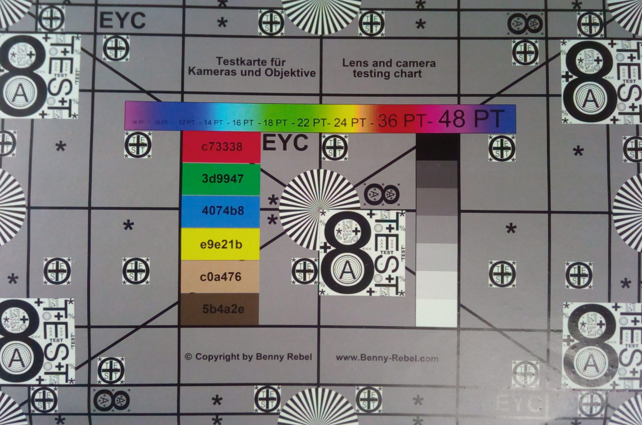 Incluso bajo condiciones de iluminación controlada, la nitidez es muy pobre. Además, la nitidez es aún peor en los bordes. El texto delante del fondo coloreado aparece borroso. Los colores parecen algo tenues, pero están sorprendentemente cerca de los colores de referencia.