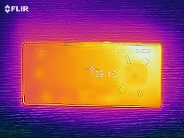 (+) La temperatura máxima en la parte superior es de 39.8 °C / 104 F, frente a la media de 35.2 °C / 95 F, que oscila entre 21.9 y 247 °C para la clase Smartphone.