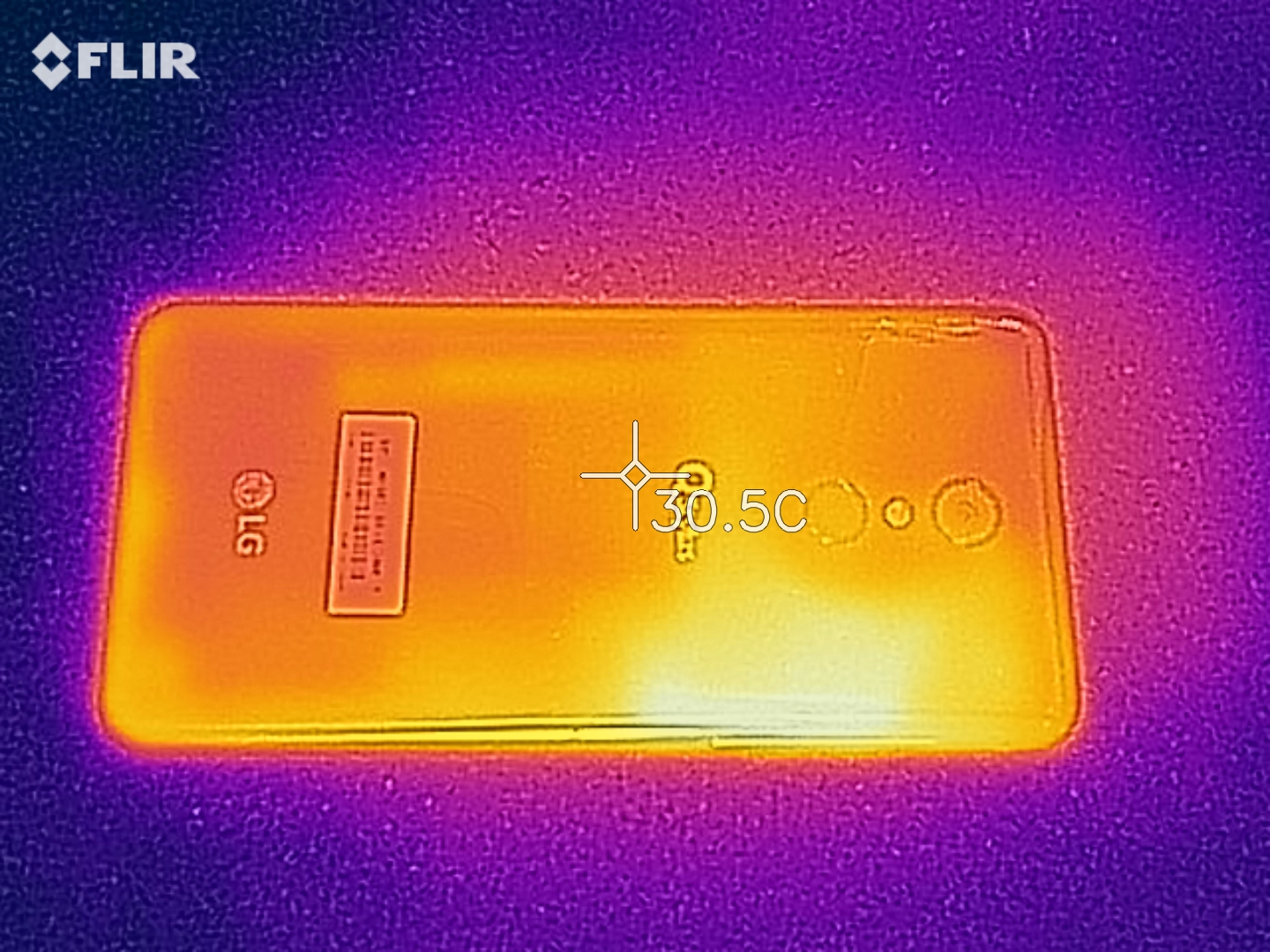 Las temperaturas superficiales del LG Q Stylus alcanzan un máximo de 27 °C mientras el dispositivo está en reposo y son bastante moderadas bajo carga con un máximo de 35 °C. Por lo tanto, el smartphone LG se puede utilizar fácilmente en el uso diario sin experimentar limitaciones debido al desarrollo de altas temperaturas.